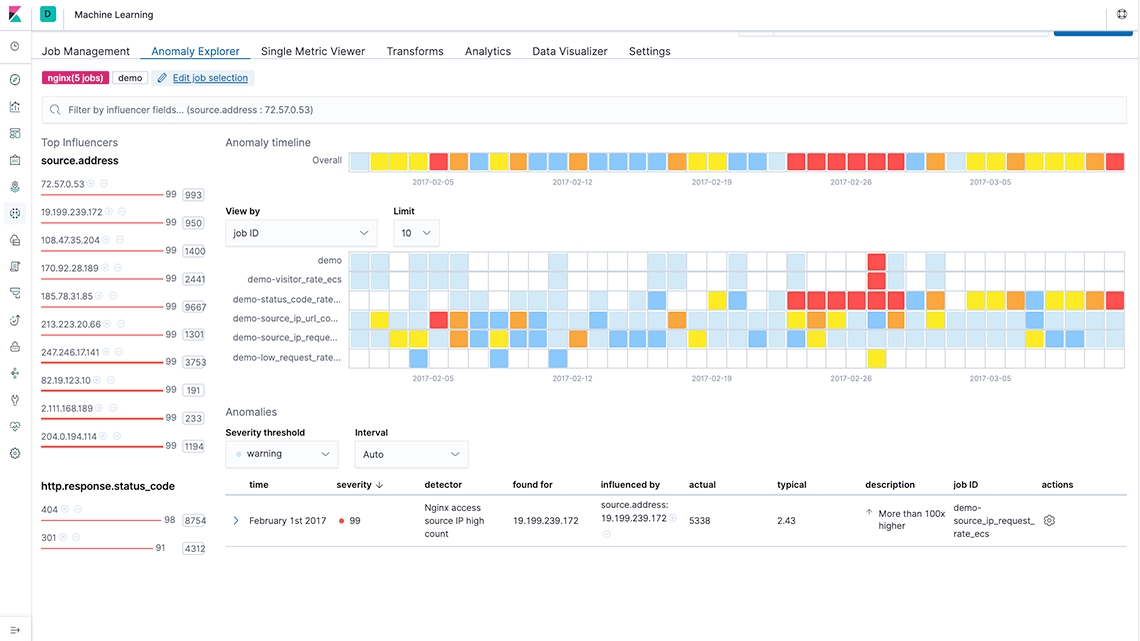 데이터가 Elasticsearch에 있으면, 머신 러닝을 위한 준비가 완료된 것입니다. Elastic Stack은 수집 시 데이터를 처리하여, 근본 원인을 식별하는 데 필요하거나 모든 이벤트에 컨텍스트를 추가해야 하는 메타데이터를 갖도록 합니다.